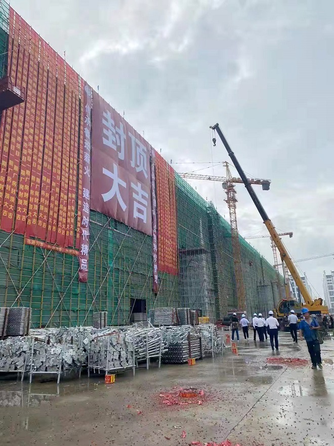 项目自今年3月开工建设以来,克服新冠肺炎疫情、持续暴雨等影响,在保证项目质量和安全生产的基础上,严格按照进度节点顺利完成主体结构封顶。
