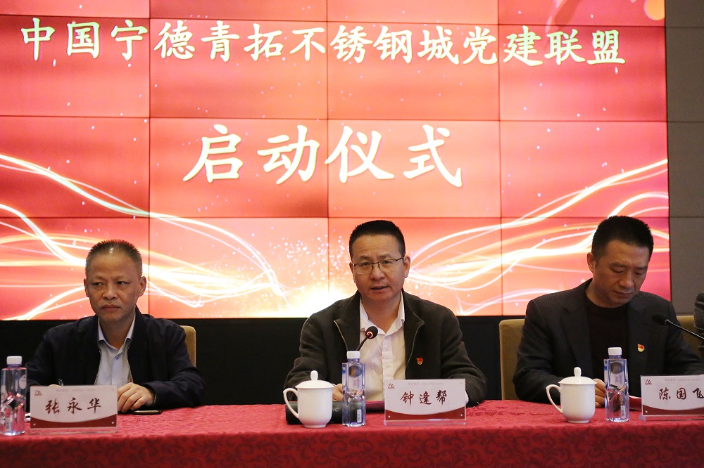 11月4日,由福安市委组织部、湾坞镇党委、青拓集团有限公司党委联合发起成立的宁德青拓不锈钢城党建联盟启动仪式在青拓集团水上会议室举行,福安市委常委、组织部部长钟逢帮,城投集团董事长张永华,青拓集团党委书记、行政总经理钟盛江等出席启动仪式。福安市16家市直单位、9家企业和12个村为成员单位共同组建了党建联盟,旨在充分发挥党建引领作用,推动组织建设与企业发展同频共振。仪式由湾坞镇党委书记陈国飞主持。