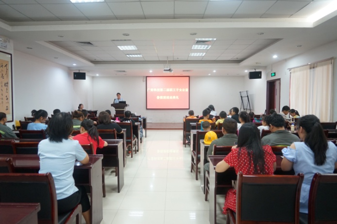 近日,广东广青金属科技有限公司第二届职工子女公益暑假班结业典礼在综合楼四楼电教室举行,公司党委副书记、工会主席江华革以及职工家长代表和孩子们参加了活动。