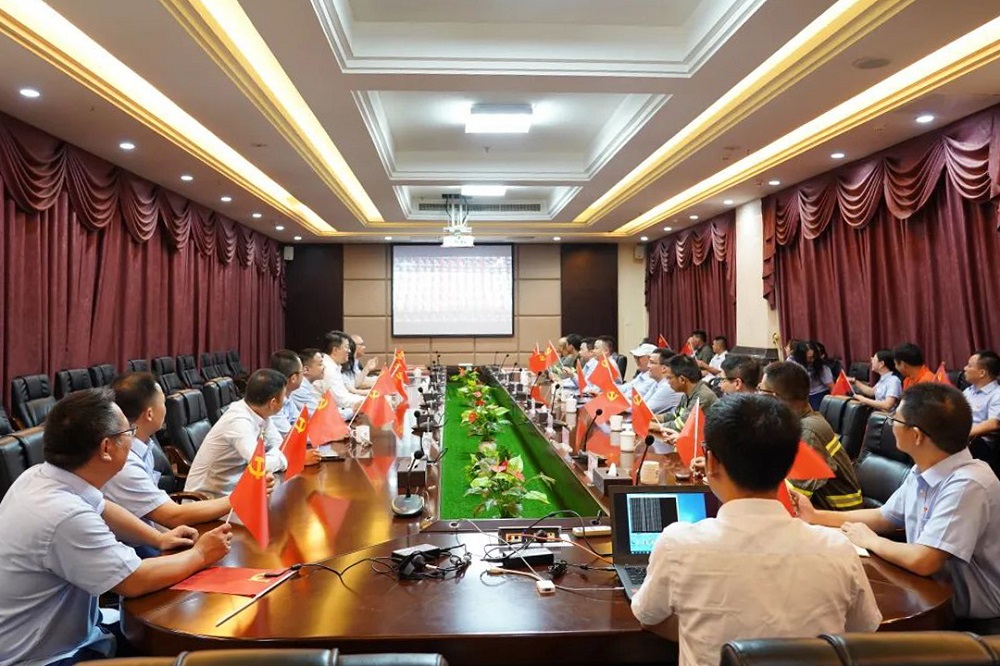 在办公楼一楼会议室的主会场,公司党委委员和其他领导班子成员,与综合部党支部全体党员一起,手持党旗,集中观看庆祝大会,共同见证建党100周年这一举世瞩目的历史时刻。党员、入党积极分子及职工代表在厂部、车间的6个分会场集中收看大会直播实况。