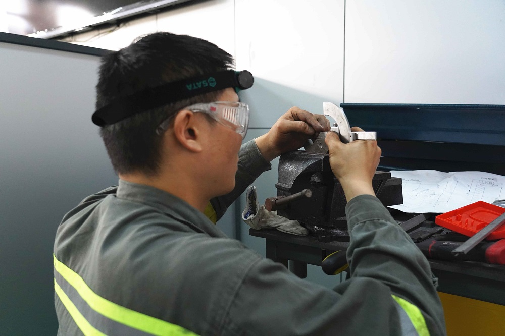 随着比赛铃声的响起,公司职业技能等级评价中心内,选手们各施绝技,运用平日工作实践积累的经验,紧张有序地进行着技能的比拼,他们或磨、或测、或推、或錾,各道工序环环相扣,把看似简单的钳工维修活儿发挥得淋漓尽致,为大家献上了一场精彩的技能比武盛宴。