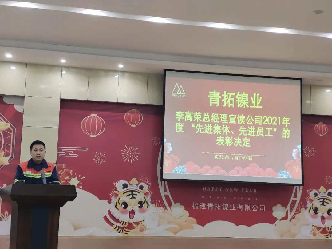 1月21日18时,福建青拓镍业有限公司在公司大礼堂召开了2021年度工作总结暨先进表彰大会。